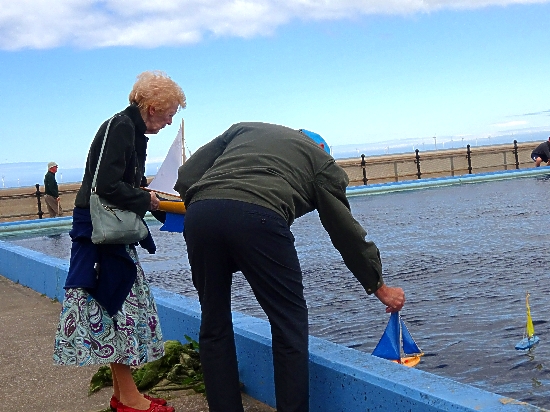 It was a good day at the Hoylake boating lake, the weather was good although a bit breezy earlier on but the sun was out and not a drop of rain in sight. Over the afternoon up to 40 people came along either to sail their yachts or just to sit and watch them being sailed. A delightful afternoon. Former Star Yacht Factory owner, Frank Denye and his wife Teresa came along with Frank sailing several of his yachts. People who turned up and didn't have a yacht were offered the loan of one to have that "Star experience".