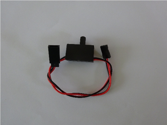 The male connector on the on/off switch connects to the power connection on the receiver, look carefully at photo, it is at the top marked VCC, fit with the black cable on the lead to the right, red to the centre.