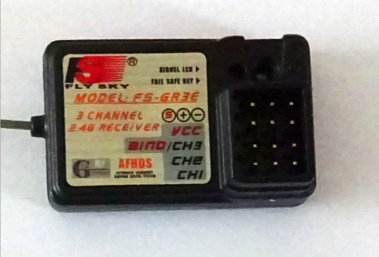 The RC receiver, most types are this shape, this is a 2 channel type that came in a set with the transmitter.