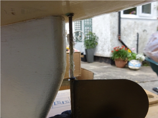 After setting, assemble the rudder adding a fair amount of grease to the bottom of the shaft as it is pushed into the tube, add the seal, brass washer and tiller arm, push together for a good fit and clamp up the arm to the flat on the shaft.